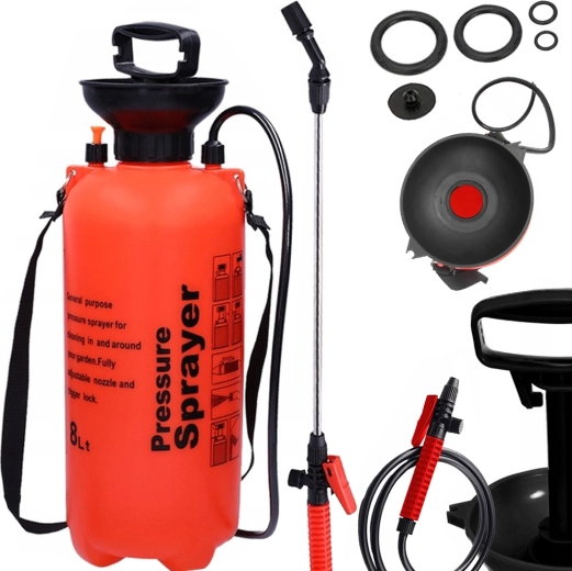 Beholderen har en volumenskala til præcis dosering af midler. Den brede påfyldningsåbning gør genopfyldning let, ventilen giver trinløs regulering af sprøjtningen, og maksimalt tryk 3 bar sørger for effektiv forstøvning. Sættet indeholder også ekstra pakninger for lang levetid.