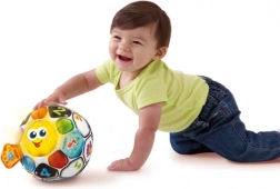 Takket være sine evner kan bolden rulle foran børnene, hvilket fanger deres opmærksomhed og motiverer dem til at observere, kravle og lege. Denne farverige fodbold med forskellige strukturer og lydeffekter udvikler ikke kun sanseopfattelse, men giver også taktil stimulation takket være den bløde plysbeklædning. Lys- og lydeffekter suppleres af det lysende ansigt og de orange knapper, som bidrager til at lære farver.