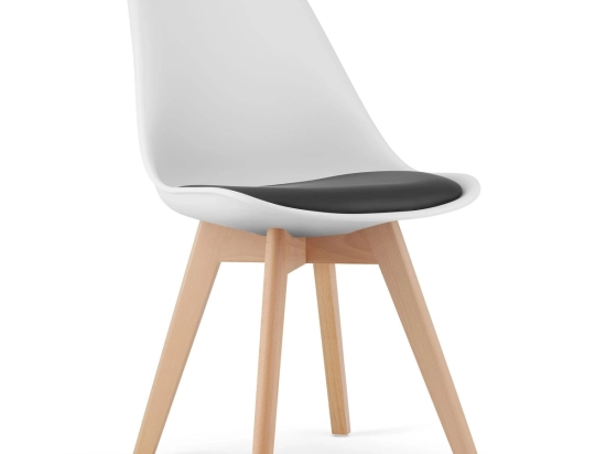 - Stolene fås i sort og hvid med ben i naturlig træfarve.