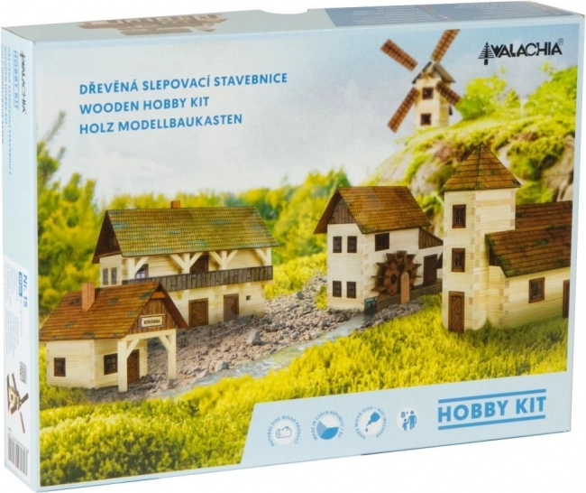 Oplev charmen ved traditionel alpinsk arkitektur og byg din egen model af kvalitetsfyr. De præcise lister 9×9 mm gør det muligt at skabe tømrede vægge, tagflader, gavle, svalegange og terrasser af 3 mm krydsfiner, som beklædes med realistiske papirtryk. Funktionsdygtige døre og vinduer af trykt karton er forsynet med folieglas, så den færdige model virker troværdig og æstetisk.
