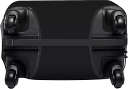 Med præcise udskæringer til både øvre og sidehåndtag samt teleskophåndtag kan du bruge kufferten uden at fjerne overtrækket. Den sorte farve virker elegant og gør det samtidig nemt at personalisere og hurtigt genkende på båndet. Velegnet til mellemstore kufferter i størrelse L i intervallet 67–70 × 45–50 × 26–30 cm.