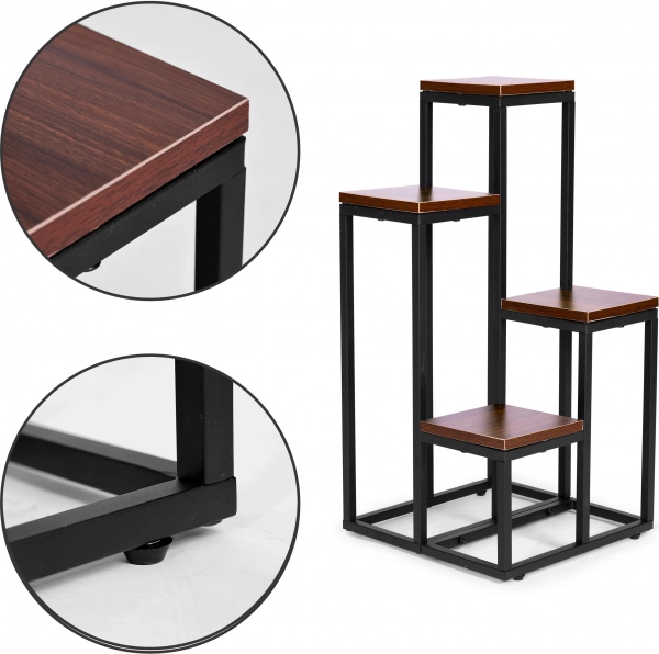 Planteholder med hylder ModernHome 4 niveauer metal og MDF mørk valnød