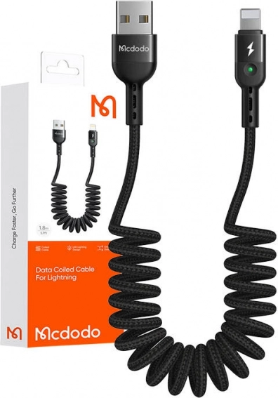 Nyd problemfri opladning med Mcdodo fjederkabel, der tilbyder hurtig opladning med op til 2A strøm. Integreret LED lys gør det nemt at finde kablet i mørket.