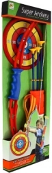 Sjovt og sikkert bueskydningssæt til små skytter fra 3 år. Indeholder plastbue, tre pile med sugekop, skuldertouge og farverigt mål til træning af præcision. Ideelt til at udvikle hånd-øje-koordination, finmotorik og leg både inde og ude.