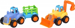Gør jer klar til timevis af kreativ leg på gården og byggepladsen. Køretøjer med svinghjulstræk kører selv efter et skub, så legen starter med det samme og uden batterier.