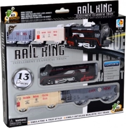 Nyd stemningen fra klassiske jernbaner med dette stilfulde batteridrevne togsæt. Sættet indeholder et lokomotiv, to vogne og skinner, som danner en rundbane med en diameter på 67 cm (sporlængde 210 cm). Toget er udstyret med lys- og lydeffekter for en endnu mere realistisk oplevelse.