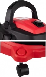 Den kraftige 1600 W motor og et undertryk på 20 kPa giver høj sugeevne, mens det komplette tilbehør dækker gulve, tæpper, fuger og polstring. Takket være hjul, håndtag og holdere til tilbehør er enheden mobil og let at manøvrere.