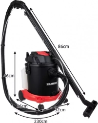 Kraftig 3-i-1 KAMINER-støvsuger kombinerer vådrengøring, tørstøvsugning og blæsefunktion. Takket være dobbeltfiltrering med HEPA + skumfilter opfanges op til 99 % af støv og allergener. Den store beholder på 20 l, tank til rengøringsmiddel på 3,5 l, et rigt udvalg af mundstykker og lavt støjniveau på 58 dB(A) gør den alsidig til tæpper, polstrede møbler og hårde gulve.