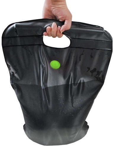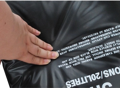 Absorberer solens energi og opvarmer vandet uden elektricitet – ideel til haven, camping eller stranden.