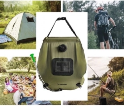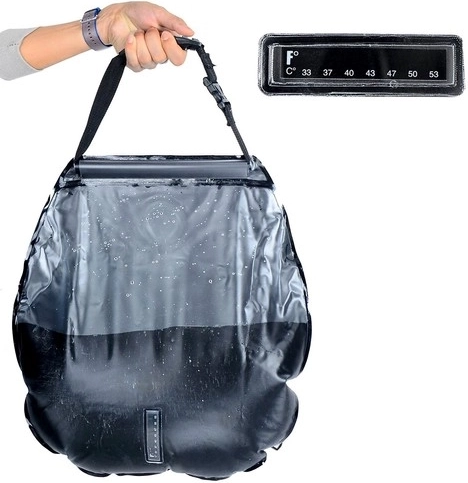 Den solardrevne bruser med en kapacitet på 20 liter giver flere minutters behagelig afskylning efter sport, havbad eller på camping. Vandet opvarmes udelukkende med solenergi, og temperaturen kontrolleres nemt på det integrerede termometer (°C/°F). En gennemsigtig bagplade gør det nemt at holde øje med både mængde og vandkvalitet.