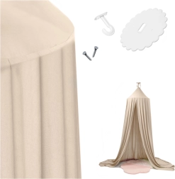 En stilfuld hængende sengehimmel i beige forvandler børneværelset til et hyggeligt sted til leg og søvn. Det lette stof og de generøse mål skaber behageligt privatliv og giver indretningen ekstra charme. I pakken finder du også de nødvendige monteringsdele, så installationen er nem og hurtig.
