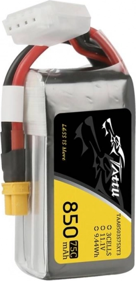 Tattu-batteriet er designet til krævende piloter, der kræver pålidelighed og topydelse. Takket være kapaciteten på 850 mAh og spændingen 11,1 V (3S) med en kontinuerlig afladningsstrøm på 75C giver det hurtig respons, stabil spænding og et fremragende forhold mellem vægt og ydelse.
