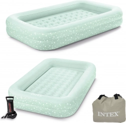 Den oppustelige madras fra Intex med dimensionerne 168x107x25 cm er fantastisk til børn på rejser – på hoteller, campingpladser osv. Den er lavet af holdbart PVC og er dækket af blødt, vandafvisende velour i en behagelig grøn farve, der passer perfekt ind i ethvert rum. Boston-ventilen tillader nem tømning på kun et minut, hvorefter madrassen kan foldes og opbevares.