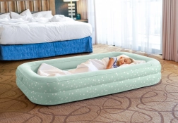 Denne oppustelige madras er designet til børn og har let forhøjede kanter, der forhindrer fald fra madrassen. Den er ideel til indendørs brug som en børneseng.