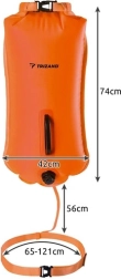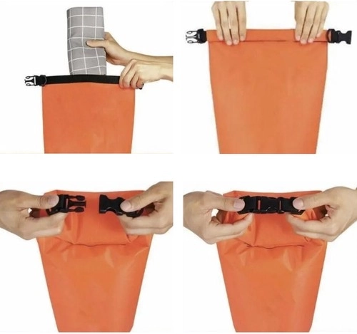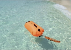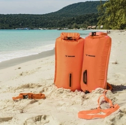 Praktisk kombination af svømmebøje og vandtæt lomme, gør det muligt at opbevare nødvendigheder under vandaktiviteter.