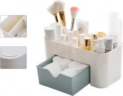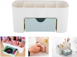 Det stilfulde design af denne organizer passer ikke kun elegant ind i ethvert interiør, men takket være den udtagelige skuffe giver den fantastisk tilpasning til dine behov. Fremstillet i grå, tilfører den din kosmetikrutine et strejf af sofistikeret elegance.