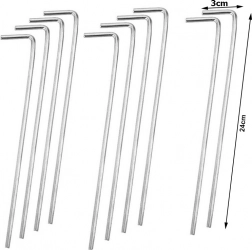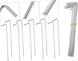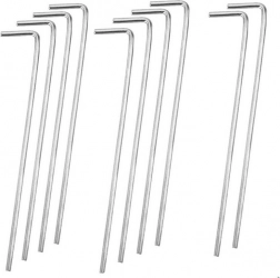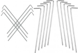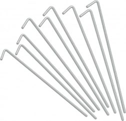 Pløkkerne er perfekte til strand- og vandretelte, havepavilloner og folietunneler. Det sølvfarvede stål er modstandsdygtigt over for deformation og langvarig brug. Sættet er kompakt pakket og klar til øjeblikkelig anvendelse.