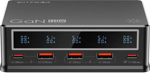 Leder du efter en alsidig og pålidelig strømkilde til flere enheder? BlitzWolf bordoplader med 110 W kombinerer topklassens effektivitet, bred kompatibilitet og sikkerhed. Fem udgange (3× USB‑A, 2× USB‑C) gør det muligt at oplade telefon, tablet, hovedtelefoner og laptop samtidig – uden kompromis med hastigheden.