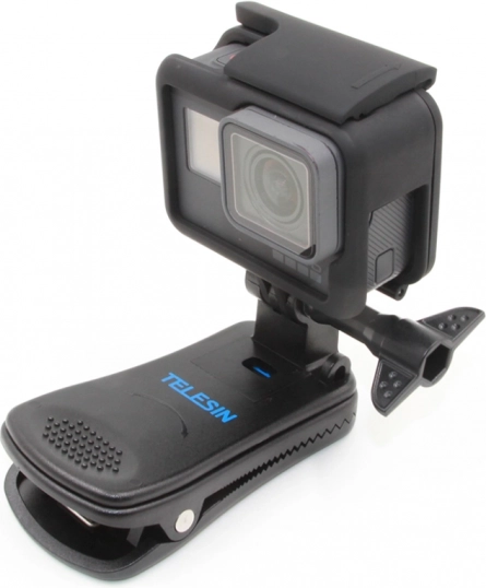 Den universelle TELESIN klipholder sikrer fast og sikker montering af et actionkamera på en rygsækstrop, bælte eller taskerem. Takket være den 360° roterende hoved kan du nemt indstille den ideelle optagevinkel, og med den udklappelige arm får du flotte selfies og jævne optagelser fra førstepersonsperspektiv.
