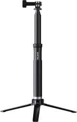 Det universelle 1/4"-gevind og den medfølgende telefonholder sikrer bred kompatibilitet med actionkameraer og smartphones. Huset i anodiseret aluminiumslegering er stærkt og let, mens TPU-grebet ligger behageligt i hånden og modstår slid. Takket være vand- og korrosionsbestandighed er den også ideel til optagelser ved vandet eller under overfladen.