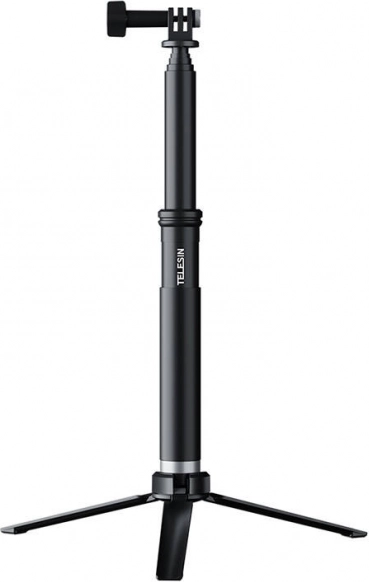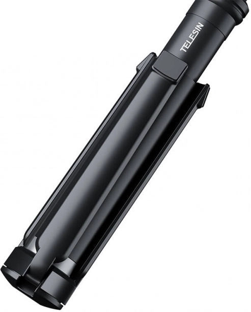 Kompakt og let selfie-stang med stativ fra TELESIN strækkes fra 20 til 90 cm, tilbyder 180° vip og en universel 1/4"-gevind. Kompatibel med kameraer DJI OSMO ACTION, GOPRO HERO, XIAOMI YI samt smartphones (holder medfølger). Takket være aluminiumslegering er den robust, vand- og korrosionsbestandig og samtidig særdeles kompakt og bærbar.
