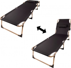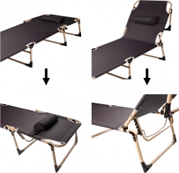 Det praktiske ryglæn med 4 positioner kan tilpasses til søvn, læsning og afslapning. Sengen foldes hurtigt, har kompakte mål, når den er sammenklappet, og er let at bære og opbevare. For ekstra komfort medfølger en lille hovedpude.