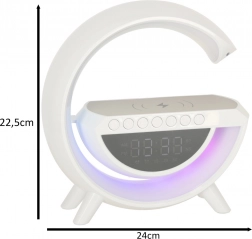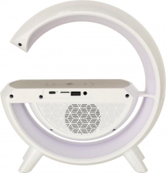 Denne moderne RGB-lampe er et ideelt supplement til natbordet, skrivebordet eller gaming-setup’et. Med et enkelt tryk lyser den rummet op i 7 farver eller skaber flydende multicolor-effekter. Den integrerede trådløse Qi-opladning lader dig lægge en kompatibel telefon på topfladen og oplade uden kabler.