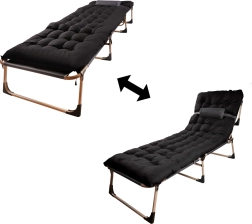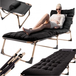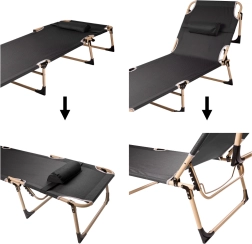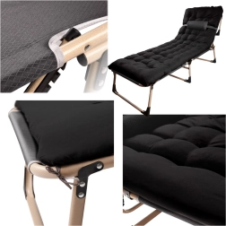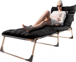 Nyd afslappende komfort hvor som helst – på terrassen, i campingen eller i haven. Den sammenklappelige turistseng med madras kombinerer en stabil stålramme og slidstærke tekstilbetræk i Oxford 1200D med en vandsøjle på 3000 Pa. Takket være ryglæn justerbart i 4 trin kan den bruges både som liggestol og seng.