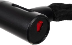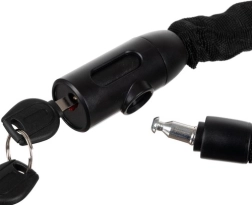 Kæden med en længde på 90 cm giver fleksibel fastlåsning til faste genstande. Konstruktionen med 15 runde led (Ø 6 mm) øger modstanden mod klipning og slag, så du kan sikre din cykel, løbehjul eller barnevogn med ro i sindet.