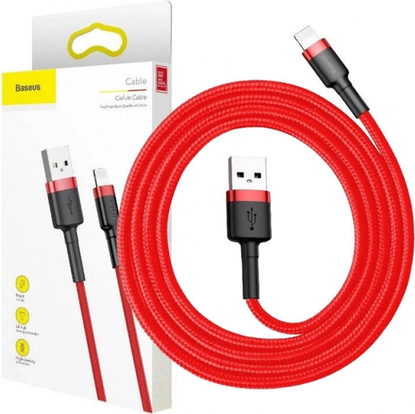 Den holdbare BASEUS Cafule opladnings- og datakabel med USB – Lightning-stik tilbyder hurtig opladning op til 2,4 A og dataoverførsel på 480 Mb/s. Takket være tekstilflet, aluminiumstik og den medfølgende velcrostrop er kablet ekstra slidstærkt, modstandsdygtigt over for sammenfiltring og ideelt til daglig brug.