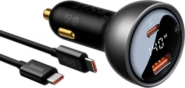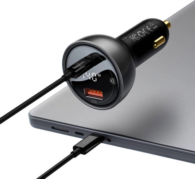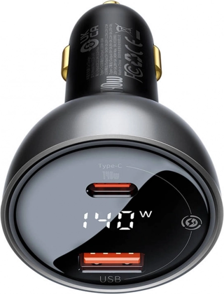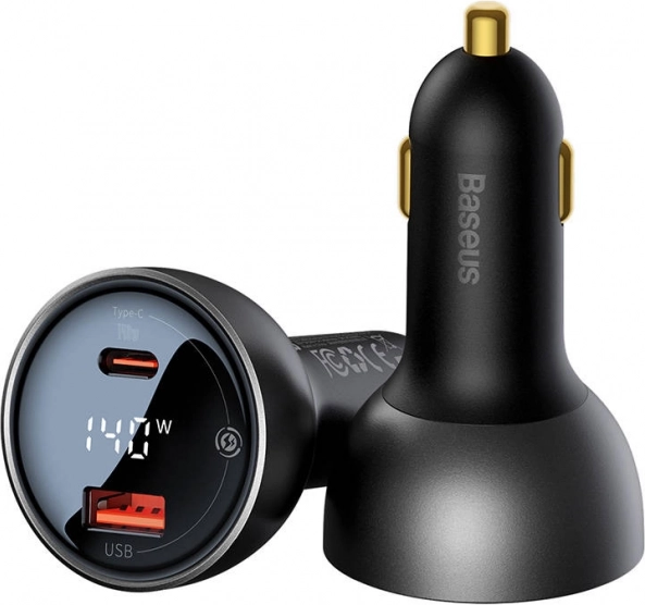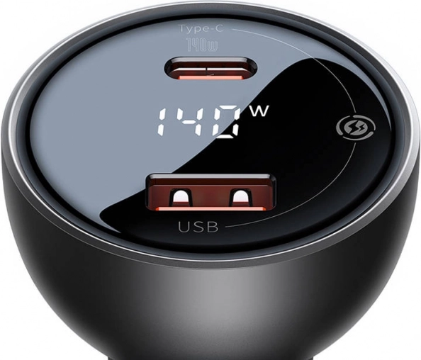Baseus Superme biloplader med display, USB‑C + USB, 140 W, sort