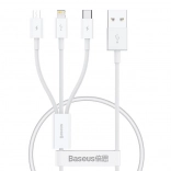 Det universelle Baseus Superior-kabel med stik Lightning, USB‑C og Micro USB oplader og forbinder de fleste enheder med én løsning. Understøtter hurtigopladning 3,5 A, dataoverførsel 480 Mb/s og har en forstærket, robust konstruktion til daglig brug.