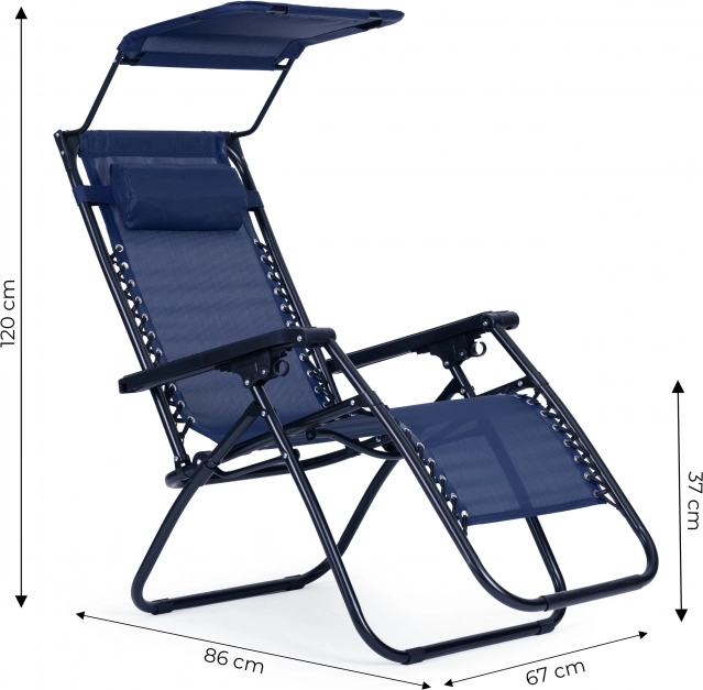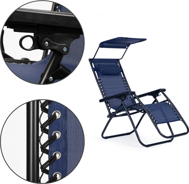 Pulverlakeret stålramme, skridsikre fødder og vandgennemtrængelig tekstil. Takket være det sammenklappelige design kan liggestolen nemt bæres og opbevares.