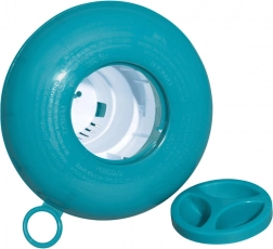 Takket være den justerbare ring med åbninger kan du nemt tilpasse frigivelsesintensiteten efter poolens størrelse og det aktuelle behov. Den lette og robuste plastkonstruktion flyder stabilt på overfladen, det øverste låg med øje gør genopfyldning og håndtering let, og konstruktionen forhindrer, at tabletten falder ud.