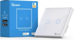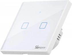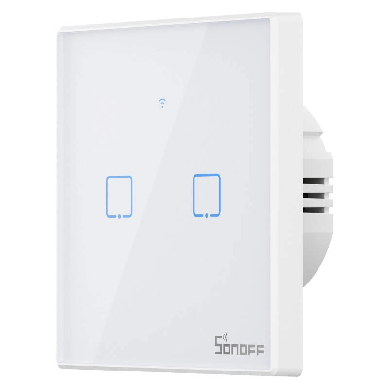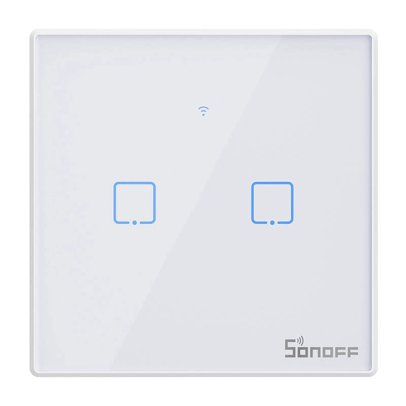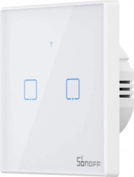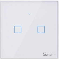 Den elegante smarte kontakt SONOFF T2 EU TX med to kanaler giver bekvem styring af belysning via Wi‑Fi, RF 433 MHz og berøring. Den tilbyder mobil styring i eWeLink‑appen, automatiseringsplaner, deling med familien samt et sikkert design i hærdet glas og flammehæmmende PC V0. Diskret nattebelysning gør det nemt at orientere sig, og det moderne design passer i enhver bolig.