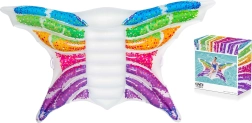 Den oppustelige liggemåtte i form af en regnbue-sommerfugl kombinerer underholdning og komfort til sommerdage ved vandet. Takket være kvalitetsvinyl er den robust, let at vedligeholde og giver sikker hvile på vandoverfladen. To luftkamre øger stabiliteten og sikkerheden, mens praktiske håndtag gør det nemt at bære og gå i vandet.