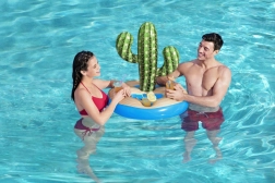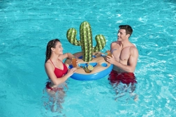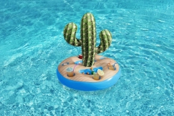 Den oppustelige drikkeholder Bestway Kaktus forvandler enhver svømmetur til en afslappet fest. Seks praktiske holdere holder dine kopper og dåser stabilt på overfladen, mens to integrerede kølerum sørger for forfriskninger hele dagen. Det holdbare PVC og det gennemtænkte design sikrer lang levetid og nem opbevaring.