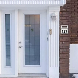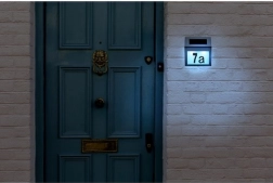 Solcellehusnummeret er lavet af ét stykke glat metal, hvilket giver et moderne design og modstandsdygtighed over for vejrpåvirkninger.