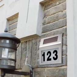 Solcellehusnummer med lys er den perfekte løsning til oplysning af din adresse. Takket være solpanelet og effektive LED-dioder sikrer det klar synlighed selv ved lav lysintensitet. Dæmringssensoren regulerer automatisk tænding og slukning af lyset efter det omgivende lys.