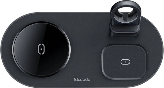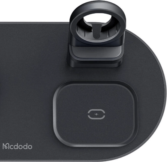 Farvel til kabelspaghetti. Den elegante trådløse station MCDODO 3-i-1 samler opladning af telefon, ur og høretelefoner ét sted. Den understøtter MagSafe til iPhone og er bagudkompatibel med standarderne 10 W/7,5 W/5 W, så du får hurtig og pålidelig opladning til en bred vifte af enheder, inklusive udvalgte Android-telefoner.