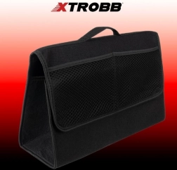 Organizeren er udstyret med velcro for solid fastgørelse i bagagerummet, så den ikke flytter sig under kørsel. Takket være forstærkningen er den stabil og let at transportere.