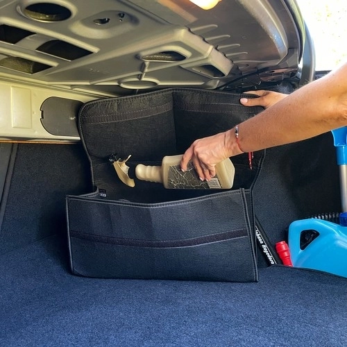 - Nem montering - Bliver stabil i bagagerummet ved hjælp af stærk velcro.