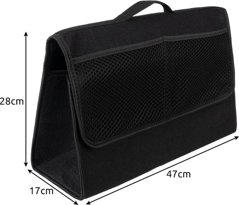 Filtorganizeren til bagagerummet er en fremragende løsning for dem, der vil holde orden i bilen. Den kvalitetsmæssige konstruktion i filt sikrer holdbarhed og lang levetid. Organizeren har en blød og let elastisk tekstur, hvilket gør det nemt at tilpasse indholdet.