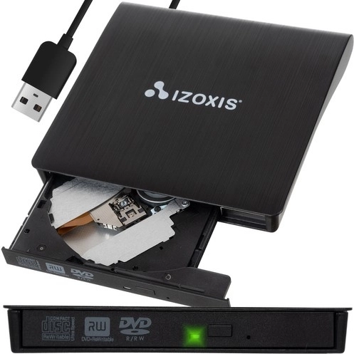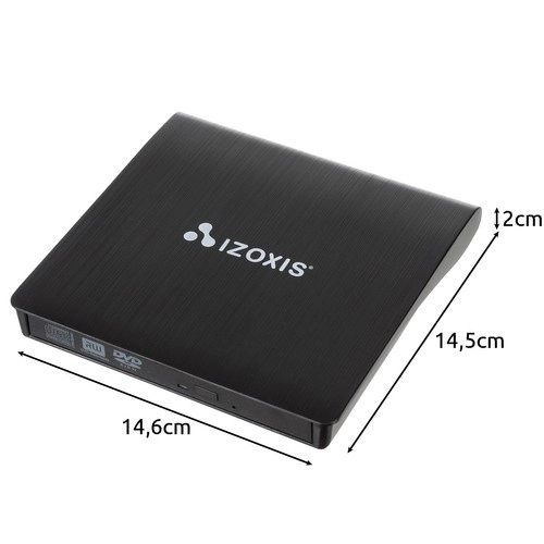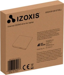 Kompakt eksternt CD/DVD-drev fra Izoxis med USB 3.0, som afspiller og skriver CD og DVD og fungerer uden installation takket være Plug & Play. Tilbyder CD-læsehastighed op til 24× og DVD op til 8×, CD-skrivehastighed 24× og DVD 8×, har integreret USB 3.0-kabel og universel kompatibilitet med Windows, macOS og Linux. Let og bærbar – ideel på farten og som hurtig udvidelse til laptop eller pc.