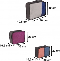 Organisatorerne er fremstillet af holdbart polyester, som er let at rengøre og modstår snavs. Det minimalistiske sorte look virker elegant, lynlåslukning giver hurtig adgang, og de bærbare mål passer perfekt i de fleste kufferter og rejsetasker.
