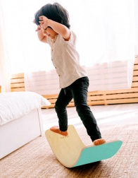 Balancebrættet LULILO AJLO er et alsidigt redskab til aktiv leg og hjemmetræning. Takket være den kurvede form træner det naturligt kroppens stabilitet, styrker core og forbedrer holdning. Den turkise filt på undersiden giver stil, dæmper støj og sikrer godt greb.