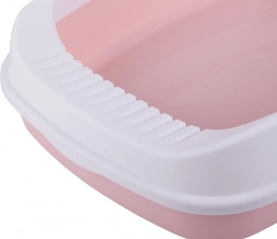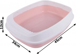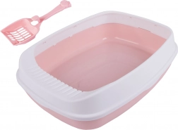 Praktisk og rummelig kattebakke med kant og skovl for nem vedligeholdelse. Takket være den åbne konstruktion og de høje kanter begrænses rodet effektivt omkring bakken. Den er fremstillet af holdbar plast, har en glat overflade for hurtig rengøring, og med målene 45 × 34 × 12 cm passer den også til større katte.