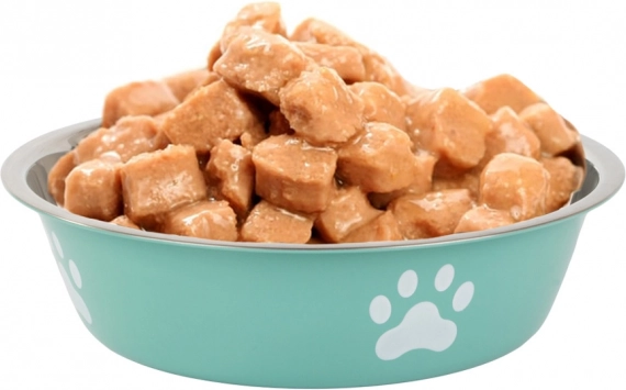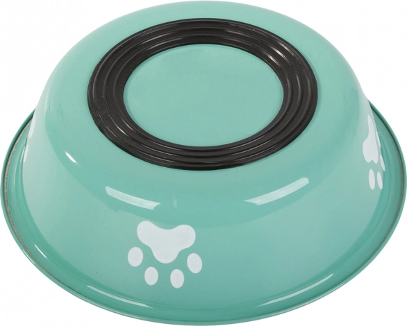 Den turkise skål med poteprint ser flot ud og passer til både hunde og katte til daglig fodring.