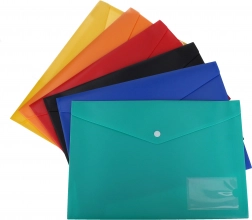 Praktisk dokumentmappe med voksoverflade, ideel til arkivering og sortering af dokumenter. Let at rengøre materiale med trykknaplukning.
