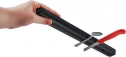 Langsgående magneter med dobbelt kerne holder knive, sakse og mindre værktøj solidt fast. Genstandene glider ikke af skinnen og bliver sikkert på plads.